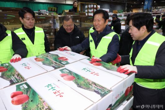 (서울=뉴스1) 신웅수 기자 = 정청래 더불어민주당 대표가 7일 서울 송파구 가락동 농수산물 종합도매시장을 찾아 낙찰받은 과일을 옮기고 있다. 2026.1.7/뉴스1 Copyright (C) 뉴스1. All rights reserved. 무단 전재 및 재배포, AI학습 이용 금지. /사진=(서울=뉴스1) 신웅수 기자 |