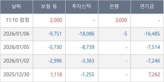※ 사모펀드 등 일부 기관의 순매매량은 표시되지 않음