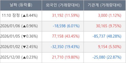 ※ 사모펀드 등 일부 기관의 순매매량은 표시되지 않음