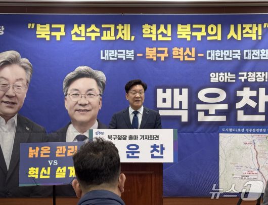 (울산=뉴스1) 김세은 기자 = 백운찬 전 울산시의원(61)이 7일 울산 북구청장 선거 출마를 선언하며 "도시공간 재구조화를 통해 북구를 울산의 핵심축으로 세우겠다"고 밝혔다.