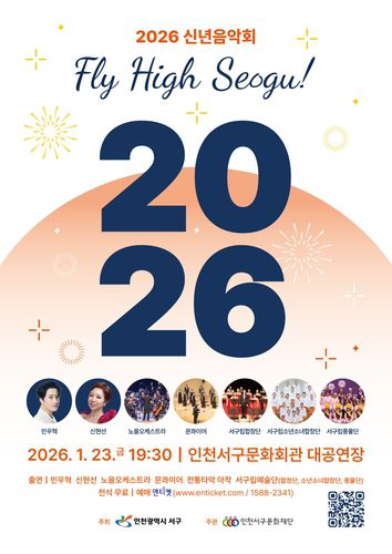 한편, 2026년 신년음악회 'Fly High Seogu!'는 전석 무료 공연으로 진행된다. 자세한 내용은 인천서구문화재단 홈페이지(www.iscf.kr)에서 확인 가능하며, 관람을 원하는 구민은 엔티켓(www.enticket.com)을 통해 사전 예매할 수 있다.