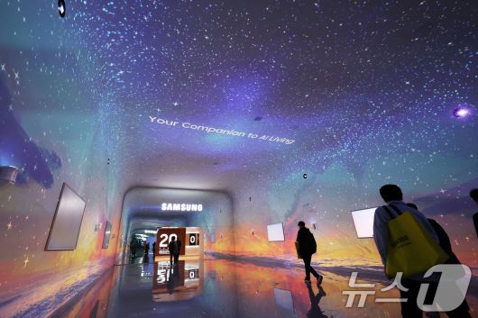 (라스베이거스=뉴스1) 황기선 기자 = 세계 최대 IT(정보기술)·가전 전시회 'CES 2026' 개막 일인 6일(현지시간) 미국 네바다주 라스베이거스 윈호텔에 마련된 삼성전자 단독 전시장에서 관람객들이 입장하고 있다. 2026.1.7/뉴스1