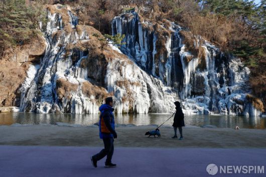 [서울=뉴스핌] 류기찬 기자 = 한파가 찾아온 2일 오후 서울 서대문구 홍제천 인공폭포 일부가 얼어붙어 있다. 2026.01.02 ryuchan0925@newspim.com |