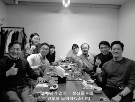 공개된 사진에는 유지태가 안성기, 지인들과 함께 식사 자리에서 밝은 미소를 지으며 카메라를 바라보고 있는 모습이 담겨 있다.