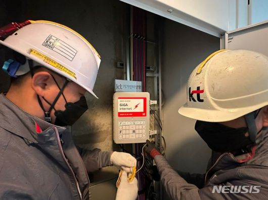 [광주=뉴시스]KT 목포지사 직원들이 아파트 기가인터넷 품질 개선 작업을 실시하고 있다. (사진=뉴시스 DB) |