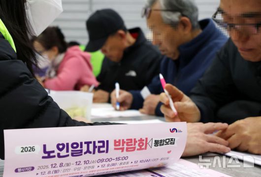 [부산=뉴시스] 하경민 기자 = '부산 남구 2026 노인일자리 박람회'가 열린 8일 부산 남구청에서 일자리를 원하는 어르신들이 참가신청서를 작성하고 있다. 오는 10일까지 열리는 이번 행사를 통해 남구는 내년도 71개 노인일자리사업에 참여할 어르신 5500여 명을 모집할 예정이다. 2025.12.08. yulnetphoto@newsis.com |