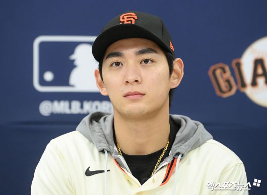 (엑스포츠뉴스 이천, 고아라 기자) 7일 오후 경기도 이천 LG챔피언스파크에서 열린 샌프란시스코 자이언츠 한국 방문 미디어데이, SF 이정후가 이야기를 나누고 있다.고아라 기자 iknow@xportsnews.com