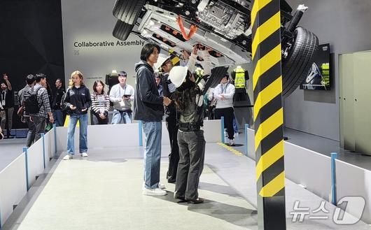 산업용 착용 로봇 '엑스블 숄더'(X-ble Shoulder) 체험존 역시 인기를 모았다. 체험객은 장비를 착용하고 전동화 전용 플랫폼 E-GMP의 윗보기 작업을 직접 체험했으며, 상당수가 체험 후 엄지를 치켜세웠다. 엑스블 숄더는 어깨 관절 부하를 최대 60%, 전·측방 삼각근 활성도를 최대 30% 낮춰 근로자의 피로도를 크게 줄일 수 있다는 설명이다.