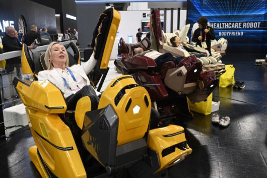 세계 최대 가전·정보기술(IT) 전시회 'CES 2026'가 개막한 6일(현지시간) 미국 네바다주 라스베이거스 컨벤션센터에 마련된 바디프랜드 부스를 찾은 관람객들이 헬스케어로봇 '733'을 체험하고 있다.조태형 기자 phototom@sedaily.com[ⓒ 서울경제, 무단 전재 및 재배포 금지]