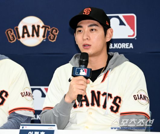 미국 메이저리그 샌프란시스코 자이언츠 이정후가 7일 이천 LG챔피언스파크에서 열린 미디어데이에서 기자회견을 가졌다. 이날 기자회견에는 래리 베어 CEO, 버스터 포지 사장, 토니 비텔로 감독, 윌리 아다메스가 함께했다. 인사말을 하는 이정후의 모습. 이천=허상욱 기자wook@sportschosun.com/2026.01.07/