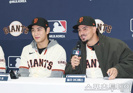 [이천(경기)=스포츠투데이 권광일 기자] 샌프란시스코 윌리 아다메스가 7일 경기도 이천시 이천LG챔피언스파크에서 열린 샌프란시스 기자회견 및 클리닉에 참석해 인사말을 전하고 있다. 2026.01.07.