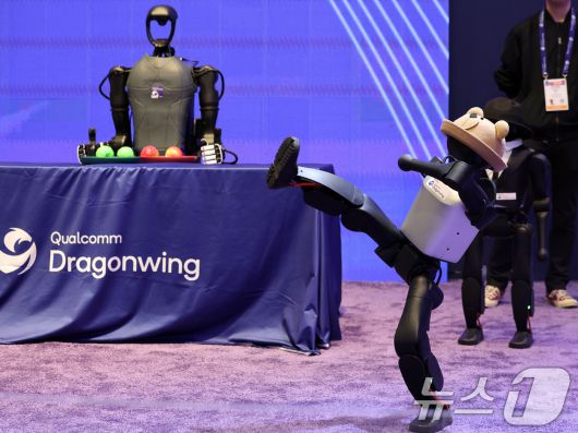 (라스베이거스=뉴스1) 황기선 기자 = 세계 최대 IT(정보기술)·가전 전시회 'CES 2026' 개막 일인 6일(현지시간) 미국 네바다주 라스베이거스 컨벤션센터(LVCC)에서 퀄컴의 로봇이 시연을 하고 있다. 2026.1.7/뉴스1