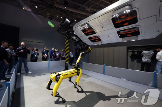 (라스베이거스=뉴스1) 황기선 기자 = 세계 최대 IT(정보기술)·가전 전시회 'CES 2026' 개막 일인 6일(현지시간) 미국 네바다주 라스베이거스 컨벤션센터(LVCC)에서 현대자동차그룹 부스를 찾은 관람객들이 로봇개 '스팟'을 살펴보고 있다. 2026.1.7/뉴스1