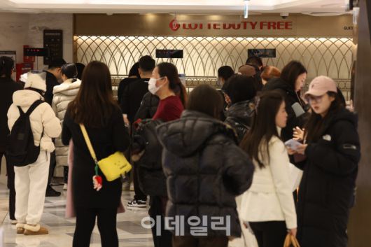 [이데일리 이영훈 기자] 중국의 한한령(한류 제한령) 단계적 해제를 암시한 가운데 7일 오전 서울 한 면세점에 중국 관광객들이 면세 혜택을 위해 대기하고 있다.