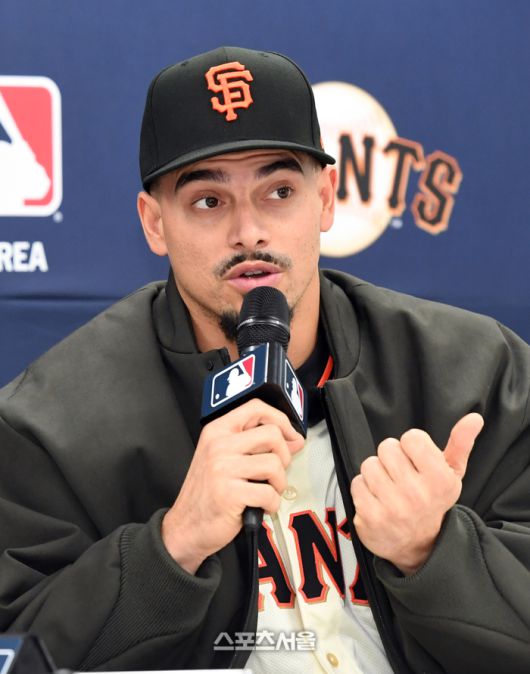 미국 메이저리그 샌프란시스코 자이언츠의 윌리 아다메스가 7일 경기도 이천 LG챔피언스파크에서 진행된 미디어데이 행사에서 인사말을 하고 있다. 2026. 1. 7.이천 | 박진업 기자 upandup@sportsseoul.com [기사제보 news@sportsseoul.com] Copyright ⓒ 스포츠서울&sportsseoul.com