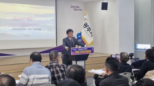 방 시장은 이날 오전 광주시청 순암홀에서 2026년 신년 기자간담회를 갖고 자족도시 전환, 철도 중심 교통체계 구축 등을 핵심으로 하는 새해 시정 운영 방향을 밝히며 이 같이 말했다.
