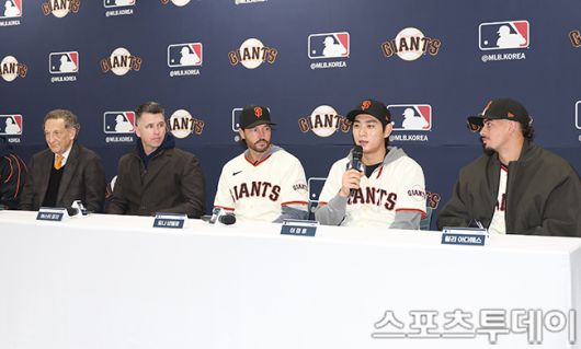 [이천(경기)=스포츠투데이 권광일 기자] 샌프란시스코 레리 베어CEO, 버스터 포지 사장, 토니 비텔로 감독, 이정후, 윌리 아다메스가 7일 경기도 이천시 이천LG챔피언스파크에서 열린 샌프란시스 기자회견 및 클리닉에 참석해 기자회견을 갖고 있다. 2026.01.07. [스포츠투데이 권광일 기자 sports@stoo.com]