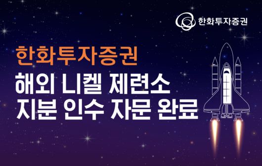한화투자증은 7일 해외 니켈 제련소 지분 인수 자문을 완료했다고 밝혔다.