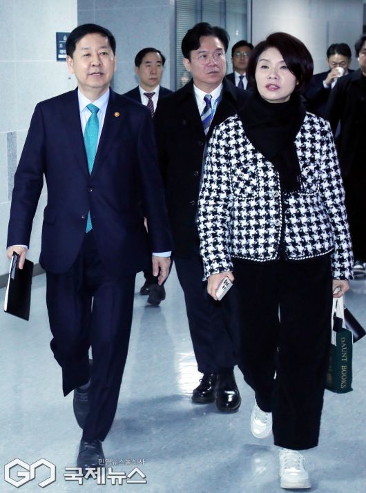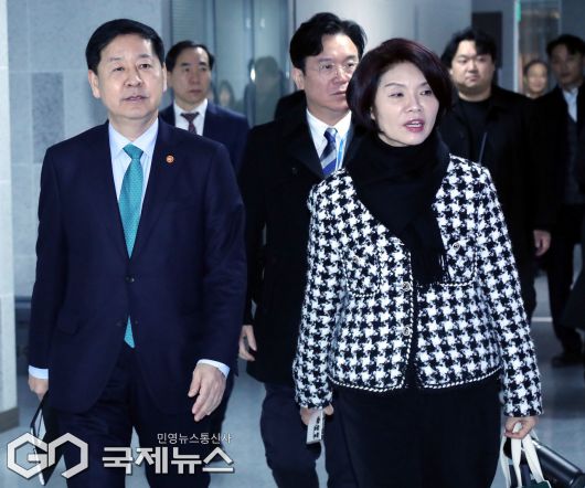 (서울=국제뉴스) 한정애 더불어민주당 정책위의장과 구윤철 경제부총리 겸 재정경제부 장관이 7일 서울 여의도 국회 의원회관에서 열린 2026년 경제성장전략 당정협의에 참석하고 있다./사진=이용우 기자