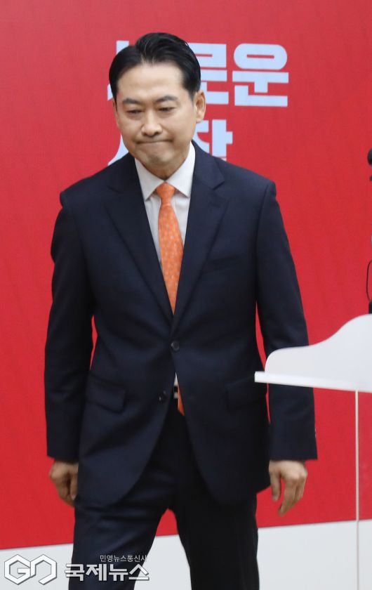 (서울=국제뉴스) 장동혁 국민의힘 대표가 7일 오전 서울 여의도 중앙당사에서 당 쇄신안을 발표와 12.3 비상계엄에 대한 사과를 마친 뒤 퇴장하고 있다./사진=이용우 기자