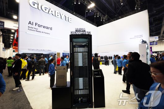 (라스베이거스=뉴스1) 황기선 기자 = 세계 최대 IT(정보기술)·가전 전시회 'CES 2026' 개막 일인 6일(현지시간) 미국 네바다주 라스베이거스 컨벤션센터(LVCC)에서 기가바이트 부스를 찾은 관람객들이 제품을 살펴보고 있다. 2026.1.7/뉴스1