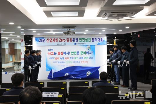 [세종=뉴시스]김동현 기자 = 한국가스기술공사는 지난 5일 대전 본사에 전 임·직원이 모인 가운데 2026년 산업재해 제로 달성위한 안전실천 결의대회 행사를 개최했다고 7일 밝혔다.