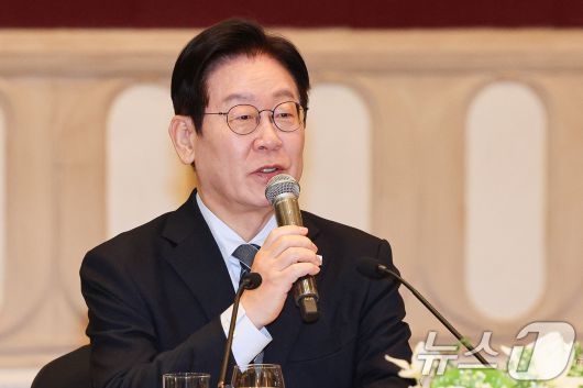 (상하이(중국)=뉴스1) 허경 기자 = 중국을 국빈방문 중인 이재명 대통령이 7일 상하이시에서 열린 순방기자단 오찬간담회에서 발언하고 있다. 2026.1.7/뉴스1