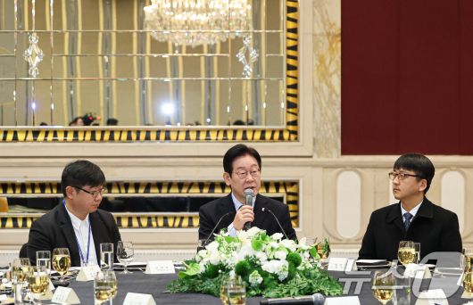 (상하이(중국)=뉴스1) 허경 기자 = 중국을 국빈방문 중인 이재명 대통령이 7일 상하이시에서 열린 순방기자단 오찬간담회에서 발언하고 있다. 2026.1.7/뉴스1