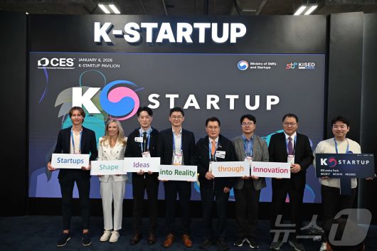 (서울=뉴스1) = 노용석 중소벤처기업부 제1차관이 6일(현지시간) 미국 라스베이거스에서 열린 CES 2026 ‘K-스타트업 통합관 개관식’에서 참석자들과 기념촬영을 하고 있다. (중소벤처기업부 제공. 재판매 및 DB 금지) 2026.1.7/뉴스1urodoct2@news1.krCopyright ⓒ 뉴스1. All rights reserved. 무단 전재 및 재배포, AI학습 이용 금지.