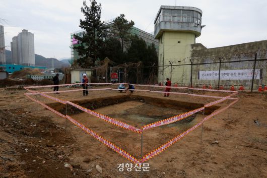 2017년 12월 5·18기념재단과 문화재 발굴 전문기관 관계자들이 옛 광주교도소 북쪽 담장 인근에서 5·18 당시 암매장됐을 것으로 추정되는 시신을 찾기 위한 발굴작업을 하고 있다. 5·18기념재단 제공 |