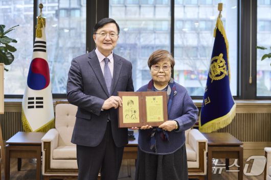 이혜성 한국상담대학원대학교 명예총장이 모교인 서울대에 자신의 이름을 딴 장학금 1억 원을 기부했다. 유홍림 서울대 총장은 6일 관악캠퍼스 행정관에서 이 명예총장에게 감사패를 증정했다.(서울대 제공) |