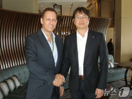 피터 틸 팔란티어 창업자(왼쪽)와 곽동신 한미반도체 회장(한미반도체 제공) |