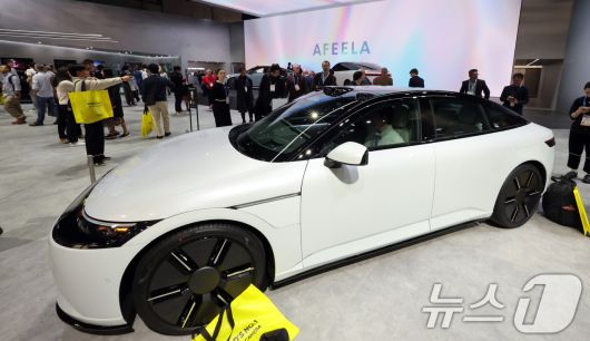 (라스베이거스=뉴스1) 황기선 기자 = 세계 최대 IT(정보기술)·가전 전시회 'CES 2026' 개막 일인 6일(현지시간) 미국 네바다주 라스베이거스 컨벤션센터(LVCC)에서 소니혼다모빌리티 부스를 찾은 관람객들이 '아펠라'를 살펴보고 있다. 2026.1.7/뉴스1