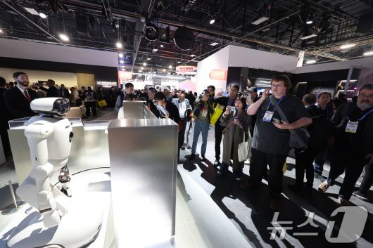 (라스베이거스=뉴스1) 황기선 기자 = 세계 최대 IT(정보기술)·가전 전시회 'CES 2026' 개막 일인 6일(현지시간) 미국 네바다주 라스베이거스 컨벤션센터(LVCC)에서 LG 부스를 찾은 관람객들이 가정용 로봇 '클로이드'를 살펴보고 있다. 2026.1.7/뉴스1
