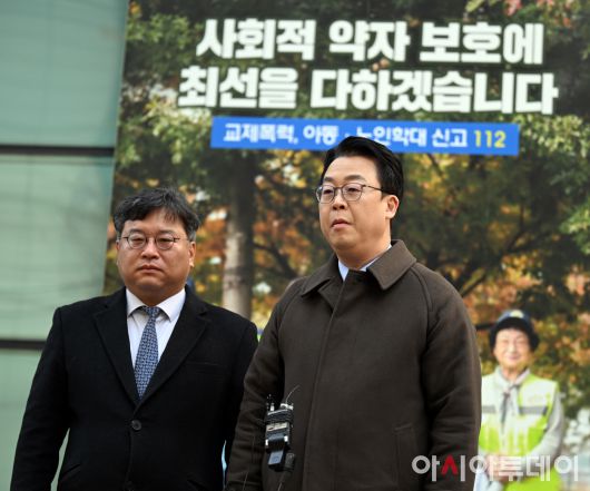 아시아투데이 박성일 기자 = 국민의힘 법률자문위원회 곽규택 위원장(오른쪽)과 김기윤 부위원장이 7일 서울 종로구 서울경찰청 민원실에서 이재명 대통령과 김민석 국무총리, 정성호 법무부 장관, 박철우 서울중앙지검장에 대해 서해 피살 공무원 사건 관련 직권남용혐의로 고발장을 접수한 뒤 입장을 밝히고 있다. ⓒ "젊은 파워, 모바일 넘버원 아시아투데이"