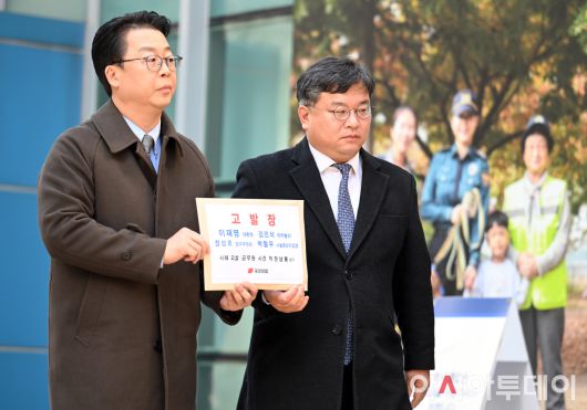 아시아투데이 박성일 기자 = 국민의힘 법률자문위원회 곽규택 위원장(오른쪽)과 김기윤 부위원장이 7일 서울 종로구 서울경찰청 민원실에서 이재명 대통령과 김민석 국무총리, 정성호 법무부 장관, 박철우 서울중앙지검장에 대해 서해 피살 공무원 사건 관련 직권남용혐의로 고발장을 접수하기 위해 서울지법으로 오고 있다. ⓒ "젊은 파워, 모바일 넘버원 아시아투데이"