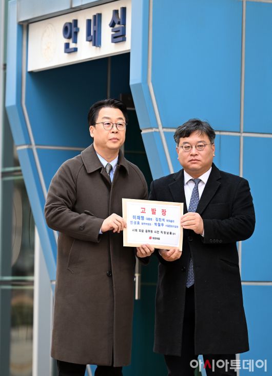 아시아투데이 박성일 기자 = 국민의힘 법률자문위원회 곽규택 위원장(오른쪽)과 김기윤 부위원장이 7일 서울 종로구 서울경찰청 민원실에서 이재명 대통령과 김민석 국무총리, 정성호 법무부 장관, 박철우 서울중앙지검장에 대해 서해 피살 공무원 사건 관련 직권남용혐의로 고발장을 접수하기 위해 서울지법으로 오고 있다. ⓒ "젊은 파워, 모바일 넘버원 아시아투데이"
