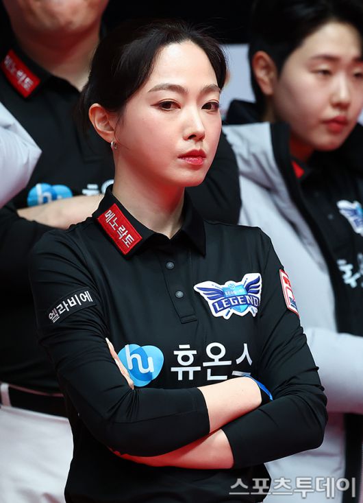 [고양(경기)=스포츠투데이 팽현준 기자] 7일 경기도 킨텍스 PBA스타디움에서 열린 웰컴저축은행 PBA 팀리그 2025-2026 5라운드 에스와이와 휴온스의 경기에서 휴온스 차유람이 이신영의 플레이를 보고 있다. 2026.01.07. [스포츠투데이 팽현준 기자 sports@stoo.com]