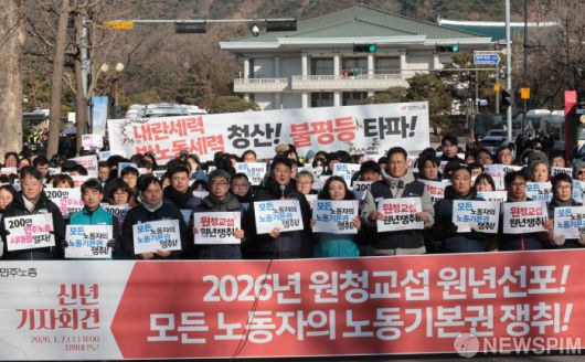 '원청교섭 원년 선포! 모든 노동자의 노동기본권 쟁취! 2026년 민주노총 신년 기자회견'