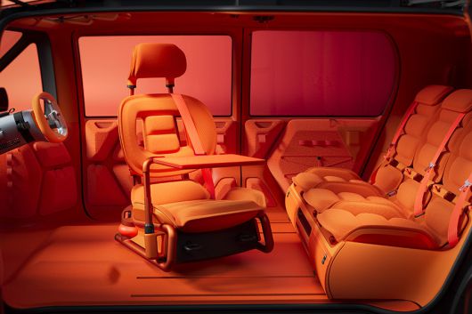 외관은 미니밴 스타일의 실루엣에 활기찬 오렌지 컬러를 입혀 긍정적인 에너지를 발산한다. 특히 B필러(중앙 기둥)를 없애고 앞뒤 도어가 서로 마주 보며 열리는 코치 도어 방식을 채택해 1,920mm에 달하는 넓은 개방감과 다채로운 아이디어를 기반으로 한 공간 활용성을 제공해 ‘독특한 매력’을 선사한다.