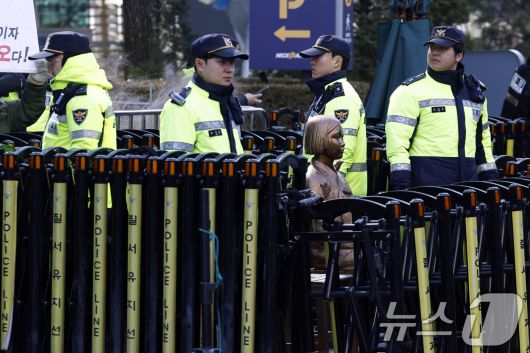 극우단체의 철거 시위 대비해 '평화의 소녀상' 경계 강화한 경찰