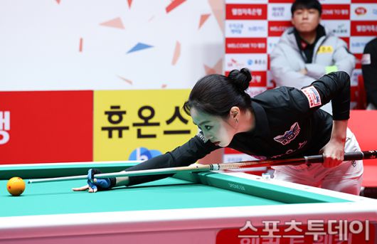 [고양(경기)=스포츠투데이 팽현준 기자] 7일 경기도 킨텍스 PBA스타디움에서 열린 웰컴저축은행 PBA 팀리그 2025-2026 5라운드 에스와이와 휴온스의 경기에서 휴온스 차유람이 샷을 하고 있다. 2026.01.07. [스포츠투데이 팽현준 기자 sports@stoo.com]