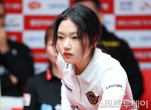[고양(경기)=스포츠투데이 팽현준 기자] 7일 경기도 킨텍스 PBA스타디움에서 열린 웰컴저축은행 PBA 팀리그 2025-2026 5라운드 에스와이와 휴온스의 경기에서 에스와이 한지은이 샷을 하고 있다. 2026.01.07. [스포츠투데이 팽현준 기자 sports@stoo.com]