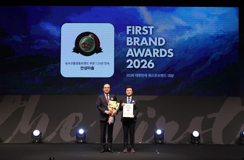 (안성=연합뉴스) 경기 안성시는 한국소비자포럼 주관 '2026년 대한민국 퍼스트브랜드 대상'에서 지역 농특산물 브랜드 '안성마춤'이 농수산물 공동브랜드 부문 대상을 받았다고 7일 밝혔다.