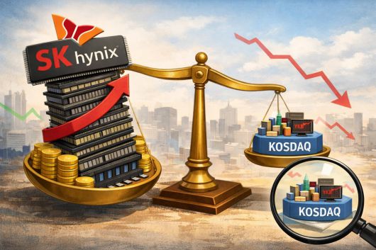특히 SK하이닉스의 시총 규모는 코스닥 시장 전체 시총(6일 기준 521조원)을 넘어섰다. 시장 규모 자체가 커졌음에도 불구하고, SK하이닉스 단일 종목의 체급이 코스닥 전체를 압도한 셈이다.