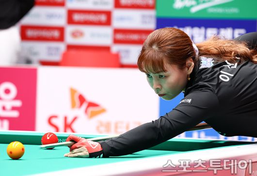 [고양(경기)=스포츠투데이 팽현준 기자] 7일 경기도 킨텍스 PBA스타디움에서 열린 웰컴저축은행 PBA 팀리그 2025-2026 5라운드 에스와이와 휴온스의 경기에서 휴온스 이신영이 샷을 하고 있다. 2026.01.07.