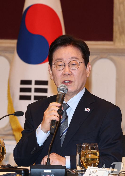 (상하이(중국)=뉴스1) 허경 기자 = 중국을 국빈방문 중인 이재명 대통령이 7일 상하이시에서 열린 순방기자단 오찬간담회에서 발언하고 있다. 2026.1.7/뉴스1