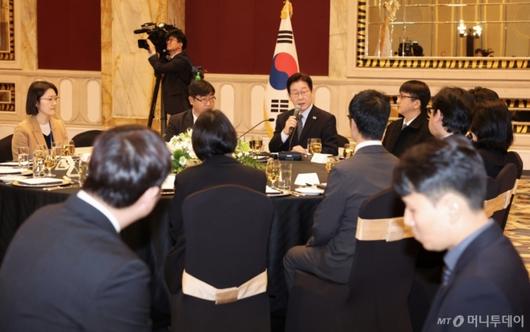 [상하이=뉴시스] 최동준 기자 = 중국을 국빈 방문 중인 이재명 대통령이 7일(현지 시간) 상하이 한 호텔에서 열린 순방 기자단 오찬 간담회에서 발언하고 있다. 2026.01.07. photocdj@newsis.com /사진= |