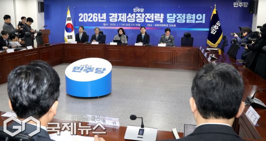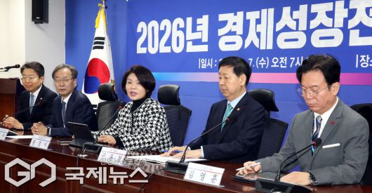 (서울=국제뉴스) 한정애 더불어민주당 정책위의장이 7일 서울 여의도 국회 의원회관에서 열린 2026년 경제성장전략 당정협의에서 인사말을 하고 있다./사진=이용우 기자