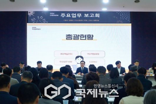 (천안=국제뉴스) 이원철 기자 = 7일 천안시는 시청 대회의실에서 '2026년 주요업무 보고회'를 열고 도시 경쟁력 강화를 위한 정책 방향과 핵심 사업을 공유했다.
